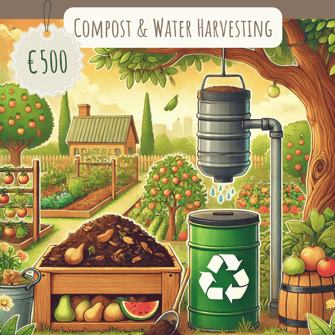 To bring our dream garden to life, we need a total of €1800— this is our ultimate goal! We’ve divided our vision into five key categories: Fruit & Vegetable Trees, Culinary & Tea Herbs, Flower Garden, Gardening Tools, and Compost & Water Harvesting. Below, you’ll find the target amount needed for each category: